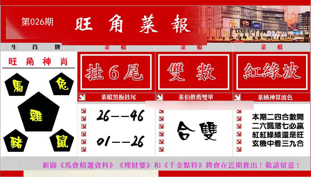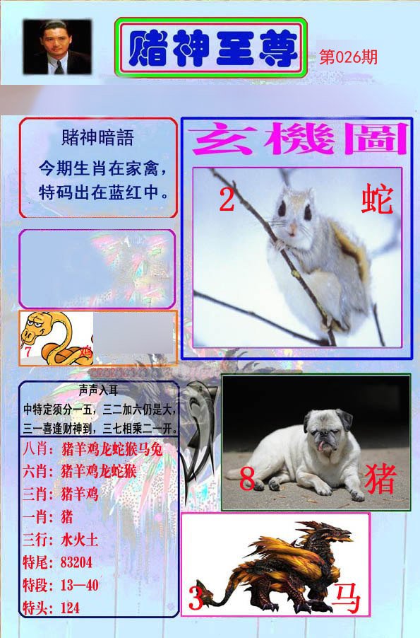 026期:复式连肖【蛇鼠羊猪鸡龙】 |