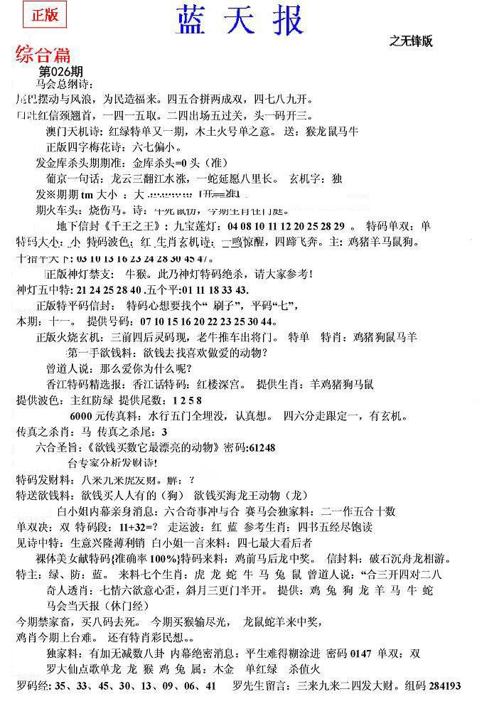 | 026期〖⑥码〗17 05 13 46 19 41 |